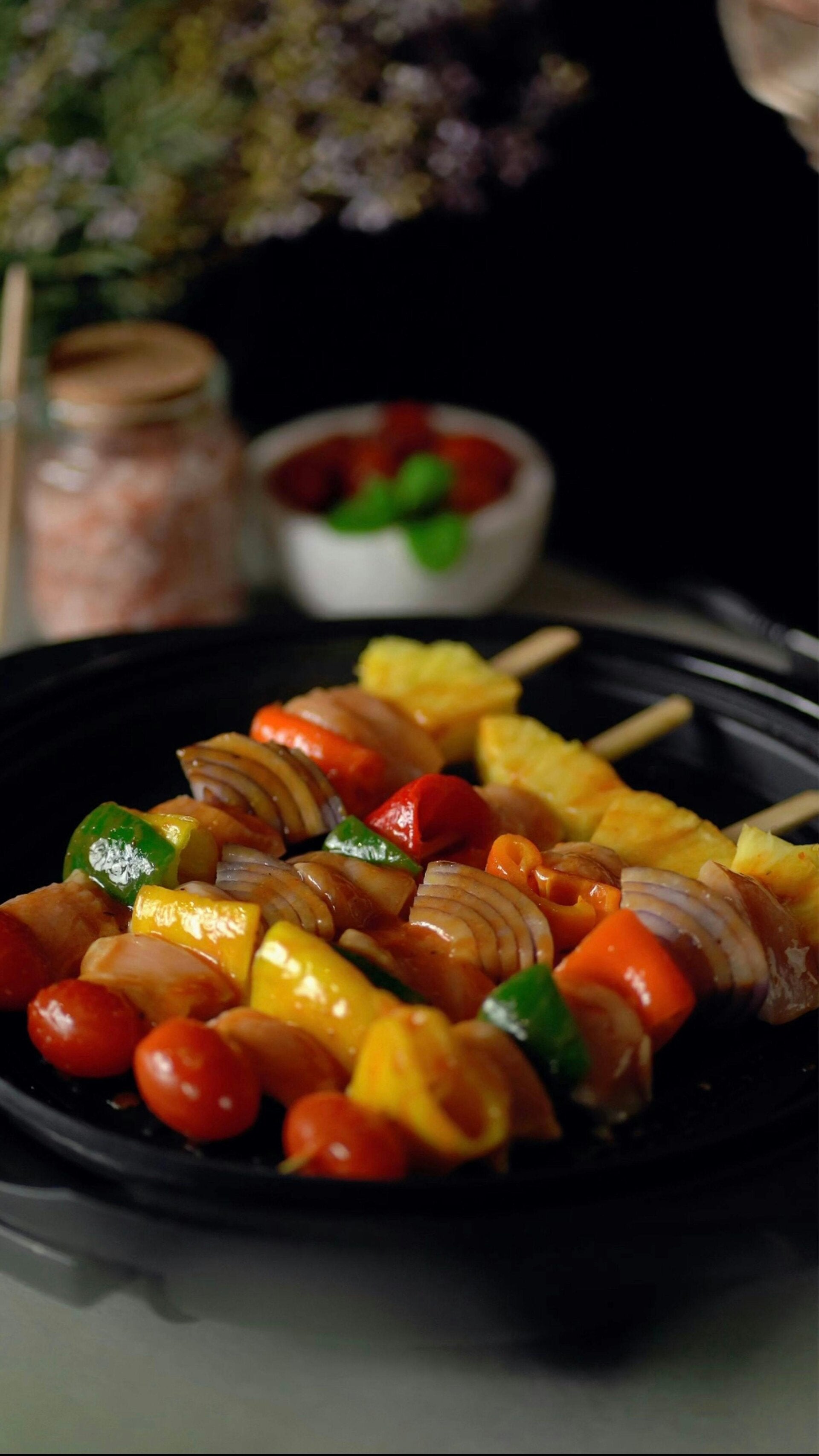 - 4 Holz- oder Metallspieße (Holzspieße vorher mindestens 30 Minuten in Wasser einweichen, damit sie nicht anbrennen)